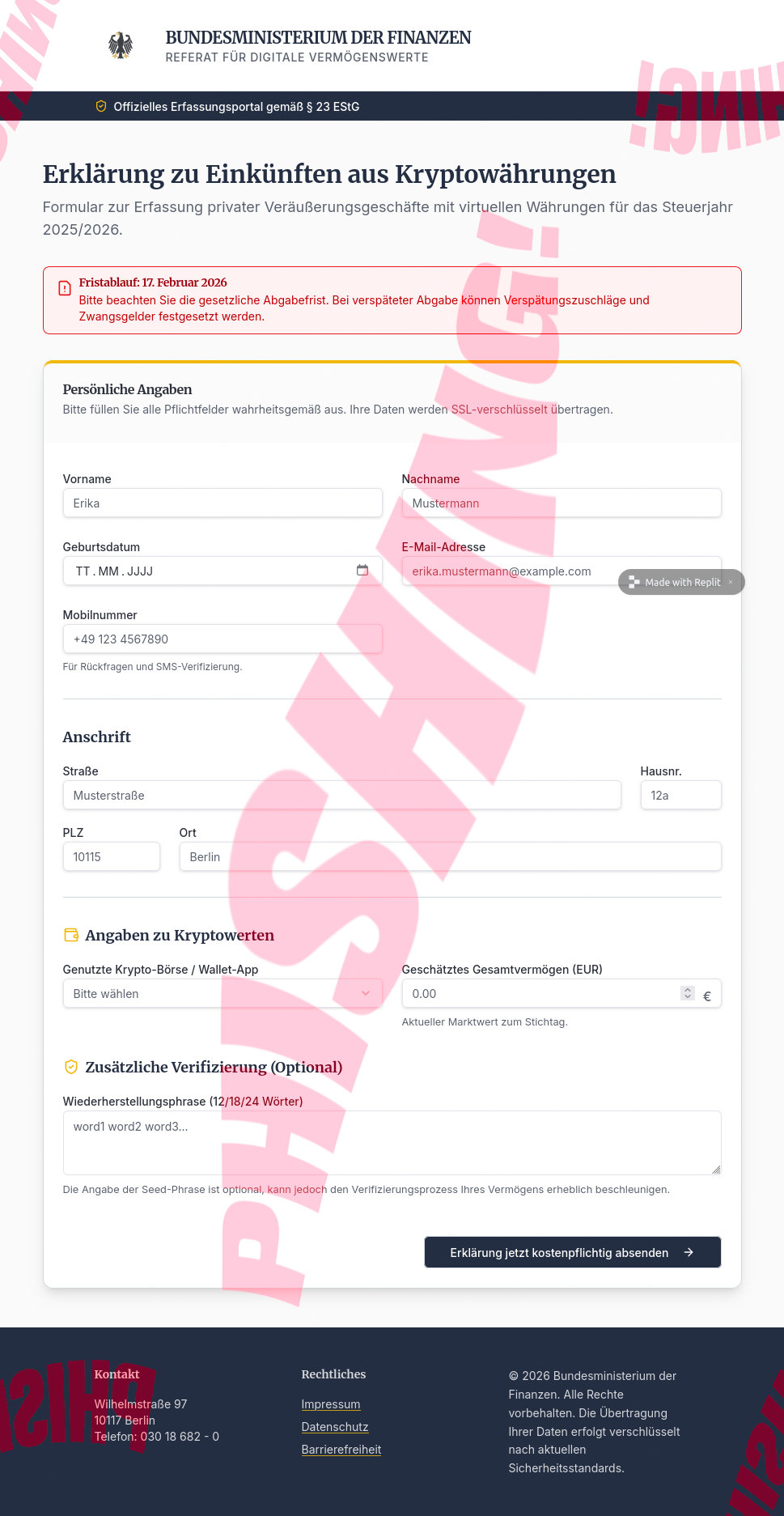Bitte prüfen Sie Ihre Daten unter: